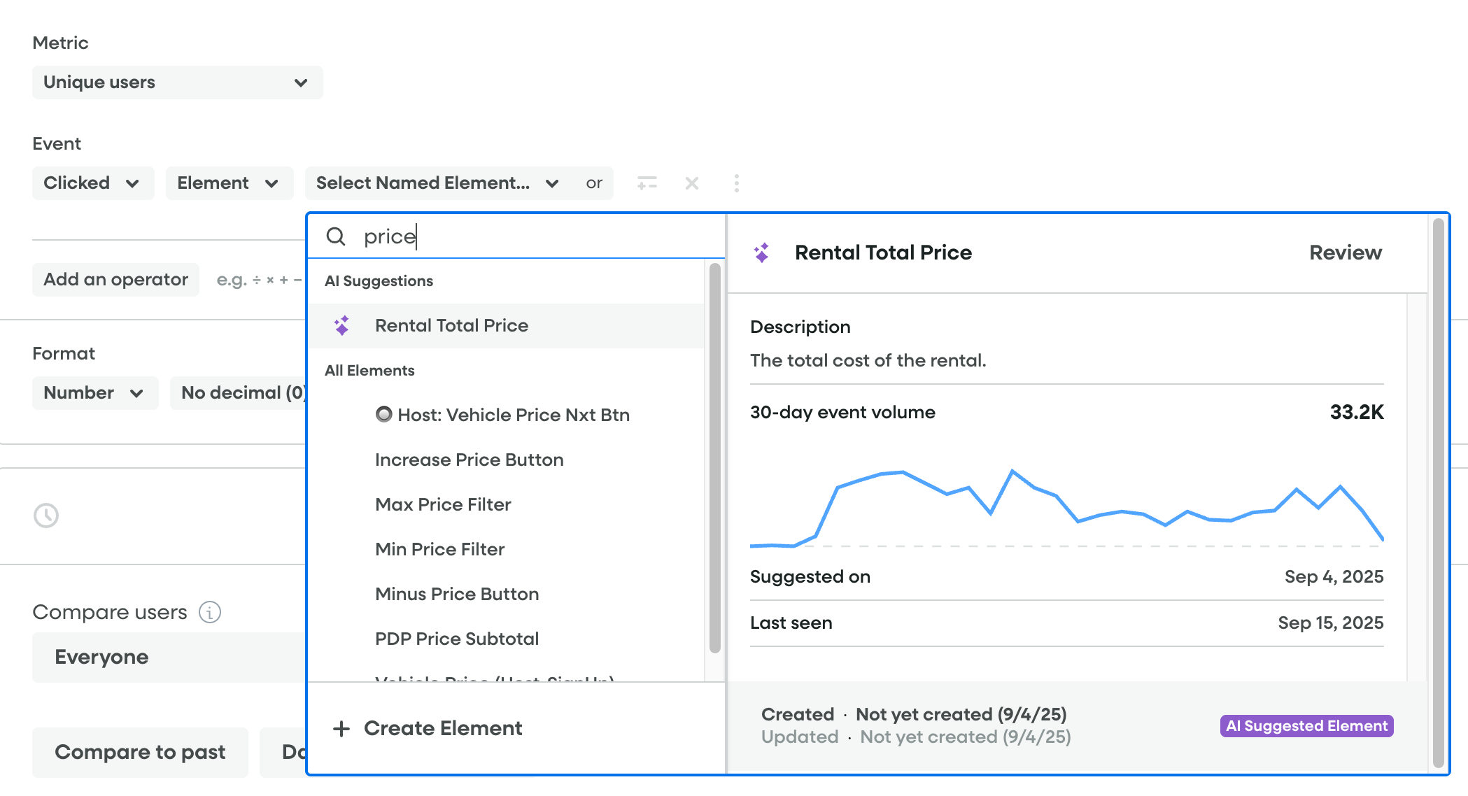 - Click the name of your AI Suggested Element. In the example above, it was "Rental Total Price", but yours will be specific to your account and use case.